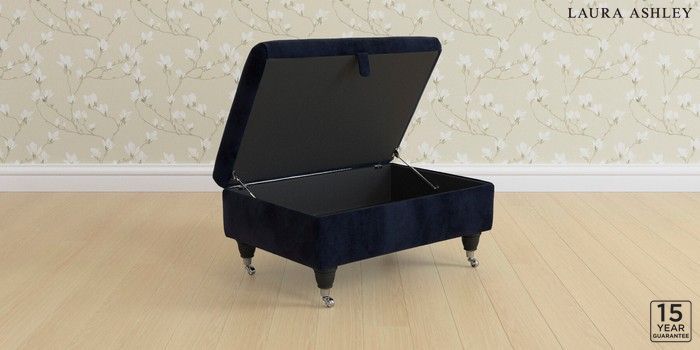 7.2.10 Buy Kingston by Laura Ashley Storage Footstool Orla Midnight Navy Low Chrome Castor - Black from the Next UK online shop Click here to use our accessible website