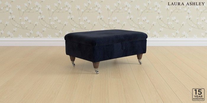 6.12.1 Buy Kingston by Laura Ashley Storage Footstool Orla Midnight Navy Low Chrome Castor - Chestnut from the Next UK online shop Click here to use our accessible website