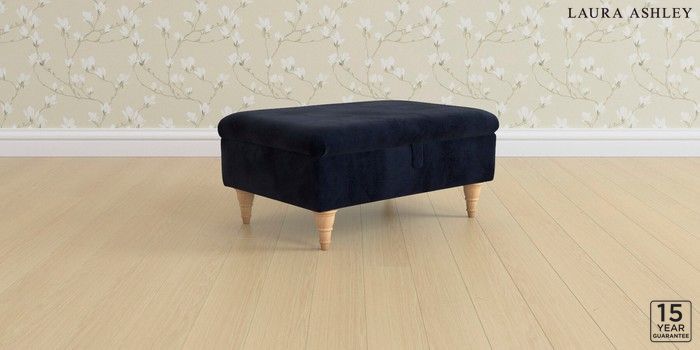 6.12.1 Buy Kingston by Laura Ashley Storage Footstool Orla Midnight Navy Low Turned - Light Oak from the Next UK online shop Click here to use our accessible website