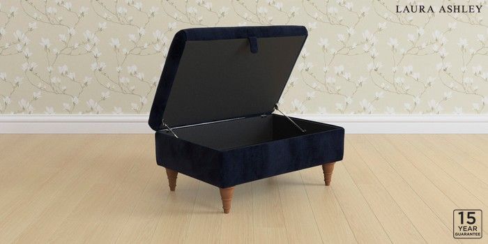 7.2.10 Buy Kingston by Laura Ashley Storage Footstool Orla Midnight Navy Low Turned - Teak from the Next UK online shop Click here to use our accessible website