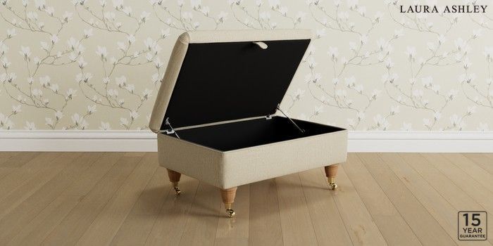 7.3.1 Buy Kingston by Laura Ashley Storage Footstool Orla Oyster Natural Low Brass Castor - Light Oak from the Next UK online shop Click here to use our accessible website