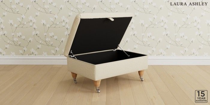7.2.10 Buy Kingston by Laura Ashley Storage Footstool Orla Oyster Natural Low Chrome Castor - Light Oak from the Next UK online shop Click here to use our accessible website