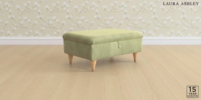6.12.1 Buy Kingston by Laura Ashley Storage Footstool Orla Pale Hedgerow Green Low Turned - Light Oak from the Next UK online shop Click here to use our accessible website
