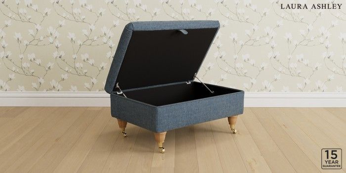 7.3.1 Buy Kingston by Laura Ashley Storage Footstool Orla Seaspray Blue Low Brass Castor - Light Oak from the Next UK online shop Click here to use our accessible website