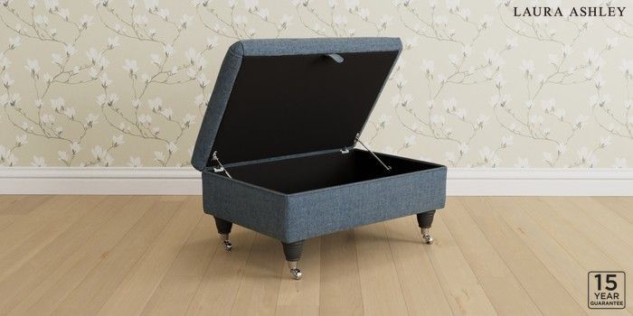 7.3.1 Buy Kingston by Laura Ashley Storage Footstool Orla Seaspray Blue Low Chrome Castor - Black from the Next UK online shop Click here to use our accessible website