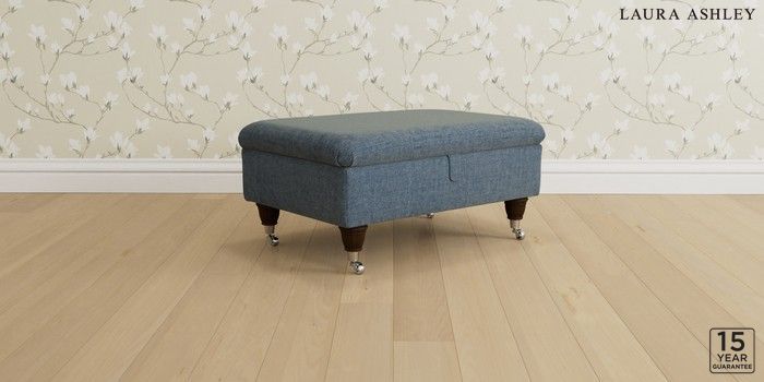 6.12.1 Buy Kingston by Laura Ashley Storage Footstool Orla Seaspray Blue Low Chrome Castor - Chestnut from the Next UK online shop Click here to use our accessible website