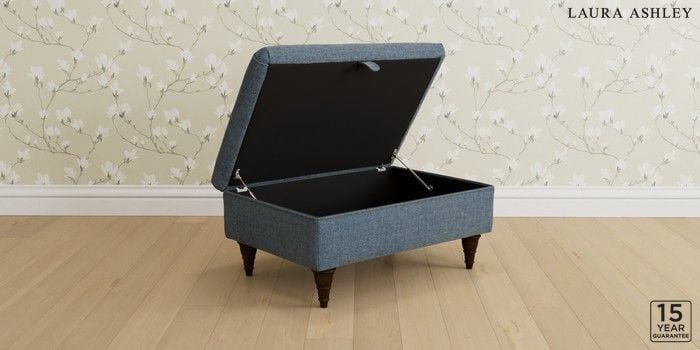 7.3.1 Buy Kingston by Laura Ashley Storage Footstool Orla Seaspray Blue Low Turned - Chestnut from the Next UK online shop Click here to use our accessible website