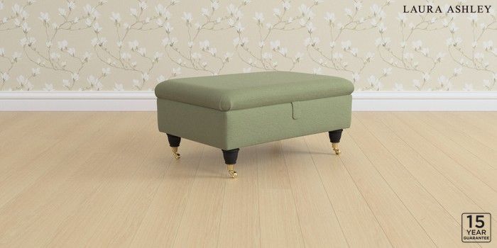 6.12.1 Buy Kingston by Laura Ashley Storage Footstool Peyton Hedgerow Green Low Brass Castor - Black from the Next UK online shop Click here to use our accessible website