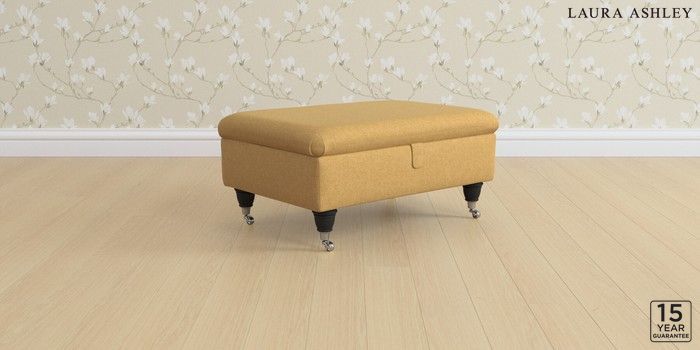 6.12.1 Buy Kingston by Laura Ashley Storage Footstool Peyton Ochre Yellow Low Chrome Castor - Black from the Next UK online shop Click here to use our accessible website