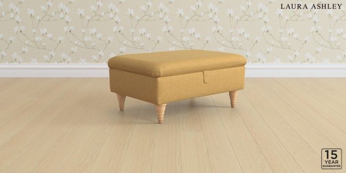 6.12.1 Buy Kingston by Laura Ashley Storage Footstool Peyton Ochre Yellow Low Turned - Light Oak from the Next UK online shop Click here to use our accessible website