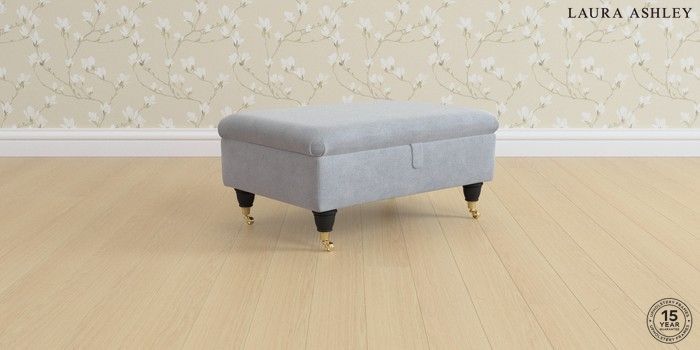 6.12.1 Buy Kingston by Laura Ashley Storage Footstool Peyton Powder Blue Low Brass Castor - Black from the Next UK online shop Click here to use our accessible website