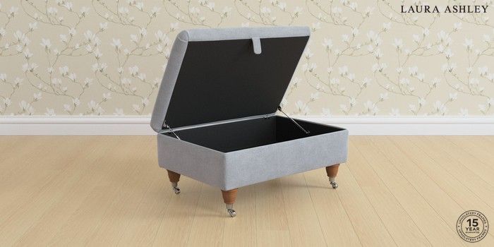 7.2.6 Buy Kingston by Laura Ashley Storage Footstool Peyton Powder Blue Low Chrome Castor - Teak from the Next UK online shop Click here to use our accessible website