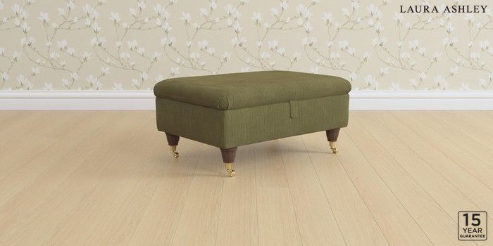 6.12.1 Buy Kingston by Laura Ashley Storage Footstool Sinclair Cord Ivy Green Low Brass Castor - Chestnut from the Next UK online shop Click here to use our accessible website
