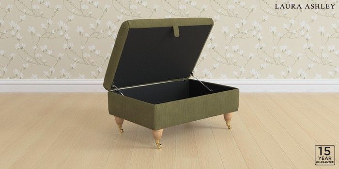 7.3.1 Buy Kingston by Laura Ashley Storage Footstool Sinclair Cord Ivy Green Low Brass Castor - Light Oak from the Next UK online shop Click here to use our accessible website