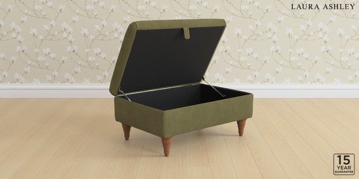 7.3.1 Buy Kingston by Laura Ashley Storage Footstool Sinclair Cord Ivy Green Low Turned - Teak from the Next UK online shop Click here to use our accessible website