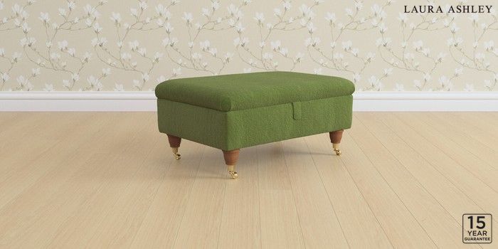 6.12.1 Buy Kingston by Laura Ashley Storage Footstool Tichwell Olive Green Low Brass Castor - Teak from the Next UK online shop Click here to use our accessible website