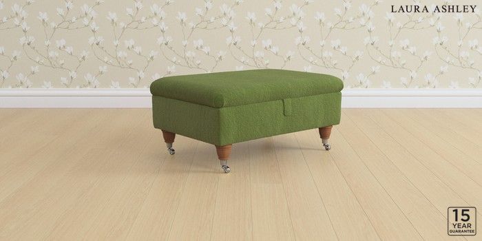6.12.1 Buy Kingston by Laura Ashley Storage Footstool Tichwell Olive Green Low Chrome Castor - Teak from the Next UK online shop Click here to use our accessible website