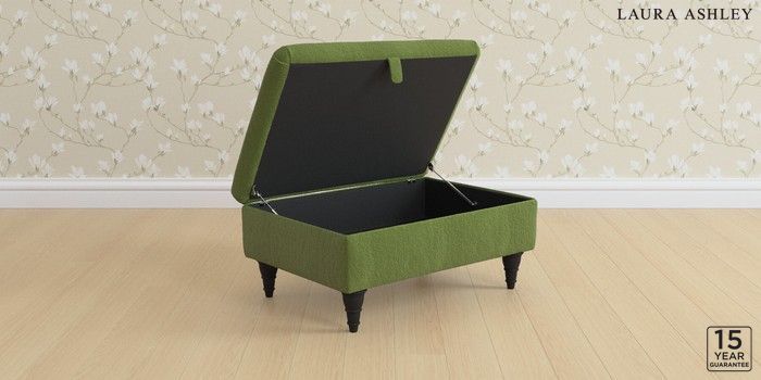 7.3.1 Buy Kingston by Laura Ashley Storage Footstool Tichwell Olive Green Low Turned - Black from the Next UK online shop Click here to use our accessible website