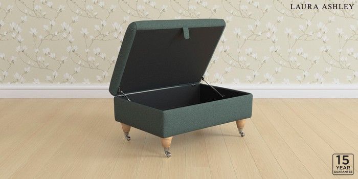 7.3.1 Buy Kingston by Laura Ashley Storage Footstool Wooton Forest Green Low Chrome Castor - Light Oak from the Next UK online shop Click here to use our accessible website