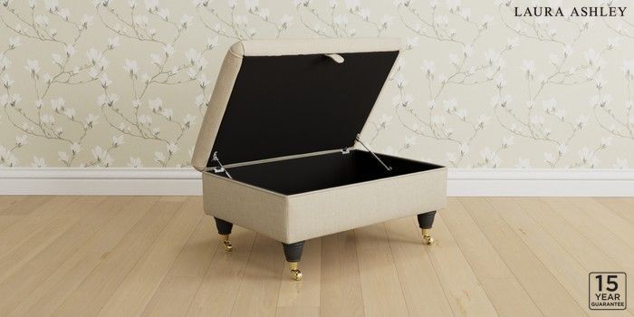 7.3.1 Buy Kingston by Laura Ashley Storage Footstool Wooton Natural Low Brass Castor - Black from the Next UK online shop Click here to use our accessible website