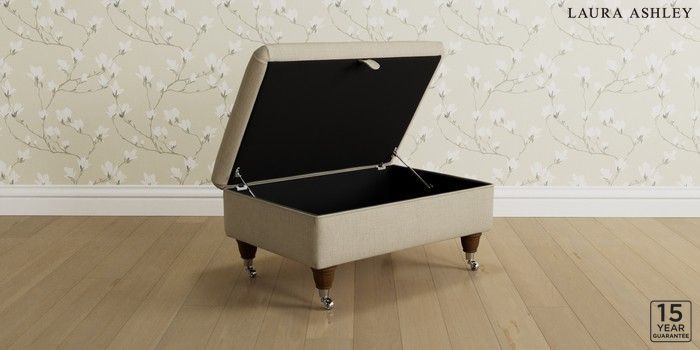 7.3.1 Buy Kingston by Laura Ashley Storage Footstool Wooton Natural Low Chrome Castor - Teak from the Next UK online shop Click here to use our accessible website
