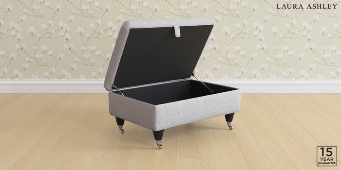 7.3.1 Buy Kingston by Laura Ashley Storage Footstool Wooton Pale Steel Grey Low Chrome Castor - Black from the Next UK online shop Click here to use our accessible website