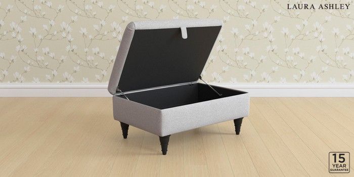 7.3.1 Buy Kingston by Laura Ashley Storage Footstool Wooton Pale Steel Grey Low Turned - Black from the Next UK online shop Click here to use our accessible website