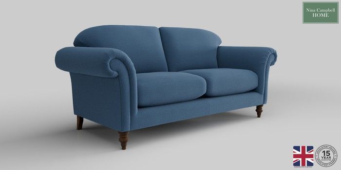 6.12.1 Buy Lamont by Nina Campbell 3 Seater Sofa Wilbur Chenille Denim Blue Turned - Dark from the Next UK online shop Click here to use our accessible website