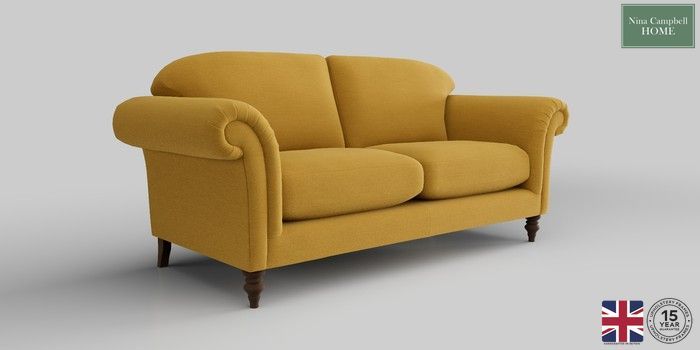 6.12.1 Buy Lamont by Nina Campbell 3 Seater Sofa Wilbur Chenille Ochre Yellow Turned - Dark from the Next UK online shop Click here to use our accessible website