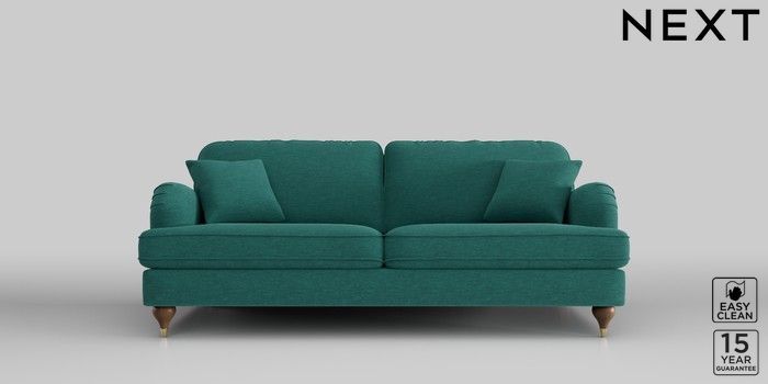 6.11.8 Buy Lilly II 3 Seater Small Sofa Fine Chenille Easy Clean Dark Juniper Green Modern Turned Metal Cap - Mid from the Next UK online shop Click here to use our accessible website