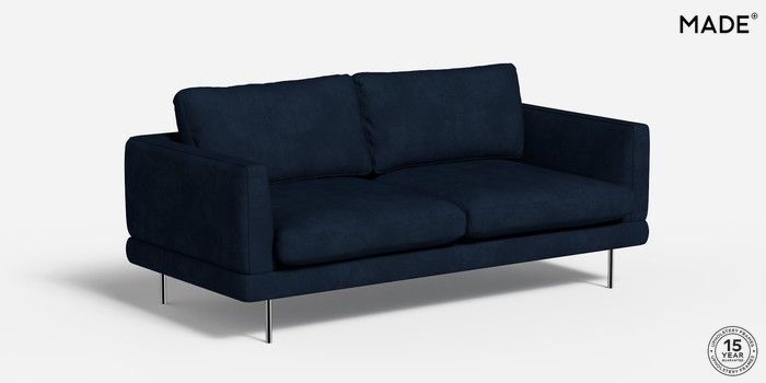 6.12.1 Buy Lugani by Made 3 Seater Small Sofa Matt Velvet Easy Clean Dark Navy Blue Skinny - Chrome from the Next UK online shop Click here to use our accessible website