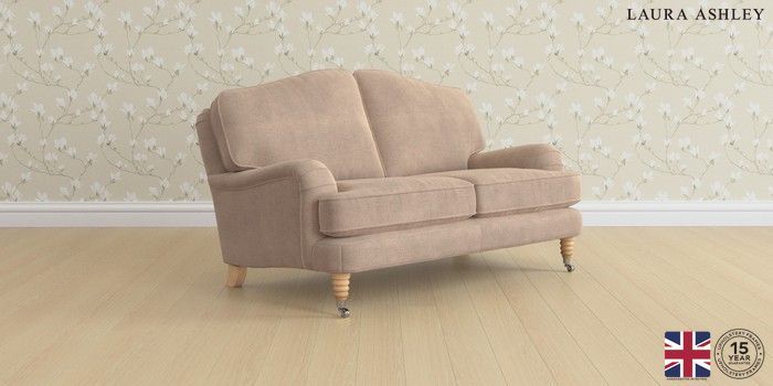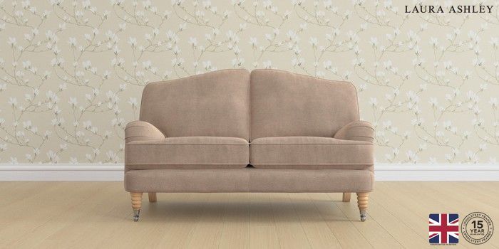6.12.1 Buy Lynden by Laura Ashley 2 Seater Small Sofa Ailsworth Mink Natural Ornate Chrome Castor - Light Oak from the Next UK online shop Click here to use our accessible website