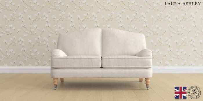 7.2.6 Buy Lynden by Laura Ashley 2 Seater Small Sofa Anneliese Oyster Natural Ornate Chrome Castor - Light Oak from the Next UK online shop Click here to use our accessible website