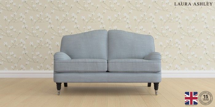 6.12.1 Buy Lynden by Laura Ashley 2 Seater Small Sofa Kinsham Seaspray Blue Ornate Chrome Castor - Black from the Next UK online shop Click here to use our accessible website