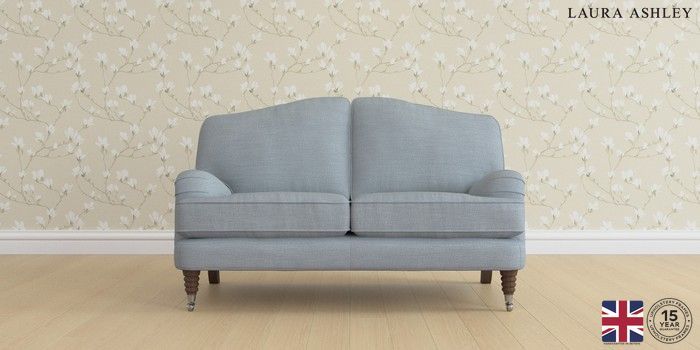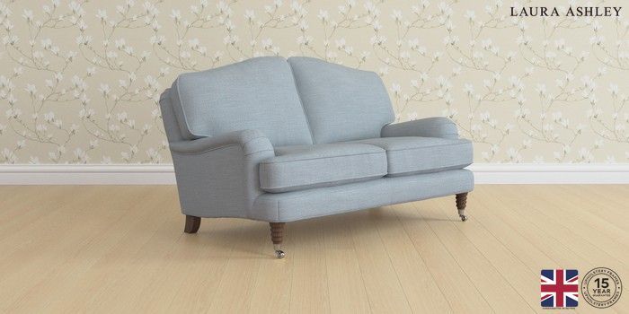 6.12.1 Buy Lynden by Laura Ashley 2 Seater Small Sofa Kinsham Seaspray Blue Ornate Chrome Castor - Chestnut from the Next UK online shop Click here to use our accessible website