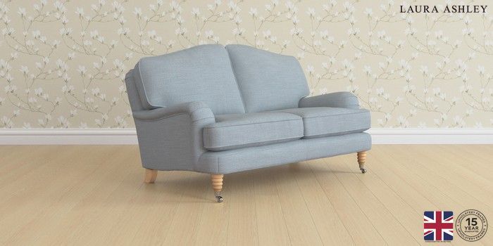 6.12.1 Buy Lynden by Laura Ashley 2 Seater Small Sofa Kinsham Seaspray Blue Ornate Chrome Castor - Light Oak from the Next UK online shop Click here to use our accessible website