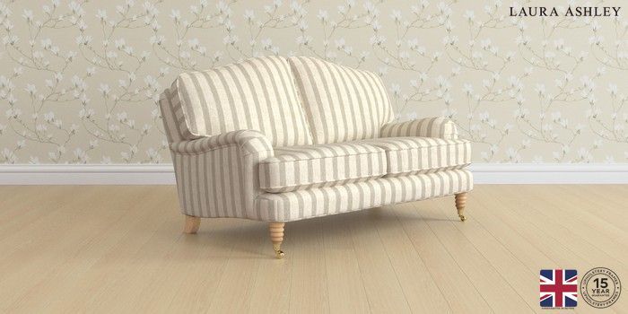 6.12.1 Buy Lynden by Laura Ashley 2 Seater Small Sofa Kinsham Stripe Natural Ornate Brass Castor - Light Oak from the Next UK online shop Click here to use our accessible website