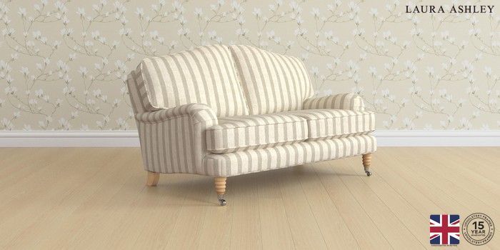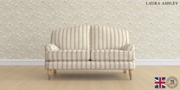 6.12.1 Buy Lynden by Laura Ashley 2 Seater Small Sofa Kinsham Stripe Natural Ornate Chrome Castor - Light Oak from the Next UK online shop Click here to use our accessible website
