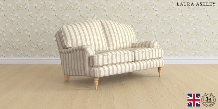 6.12.1 Buy Lynden by Laura Ashley 2 Seater Small Sofa Kinsham Stripe Natural Ornate Turned - Light Oak from the Next UK online shop Click here to use our accessible website