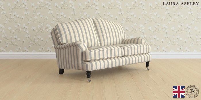 6.12.1 Buy Lynden by Laura Ashley 2 Seater Small Sofa Kinsham Stripe Seaspray Blue Ornate Chrome Castor - Black from the Next UK online shop Click here to use our accessible website