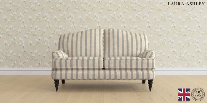 6.12.1 Buy Lynden by Laura Ashley 2 Seater Small Sofa Kinsham Stripe Seaspray Blue Ornate Turned - Black from the Next UK online shop Click here to use our accessible website