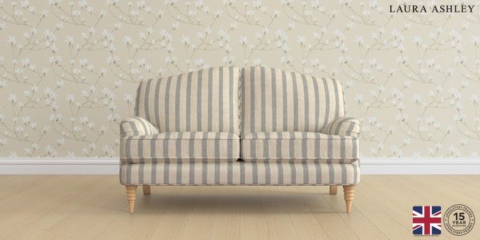 6.12.1 Buy Lynden by Laura Ashley 2 Seater Small Sofa Kinsham Stripe Seaspray Blue Ornate Turned - Light Oak from the Next UK online shop Click here to use our accessible website