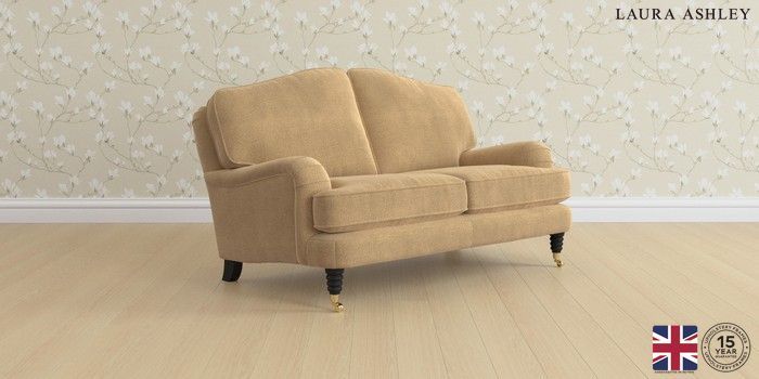 6.12.1 Buy Lynden by Laura Ashley 2 Seater Small Sofa Lundar Chenille Caramel Natural Ornate Brass Castor - Black from the Next UK online shop Click here to use our accessible website