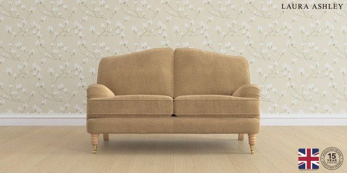 6.12.1 Buy Lynden by Laura Ashley 2 Seater Small Sofa Lundar Chenille Caramel Natural Ornate Brass Castor - Light Oak from the Next UK online shop Click here to use our accessible website