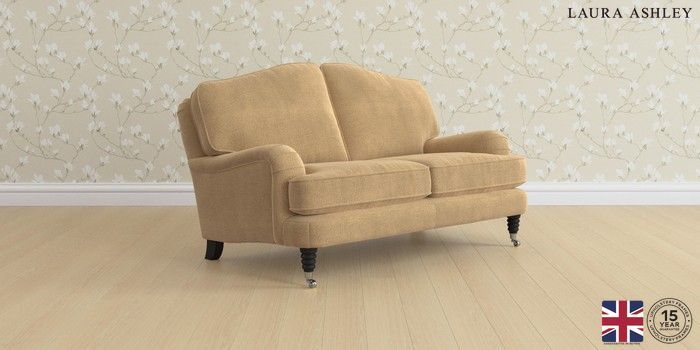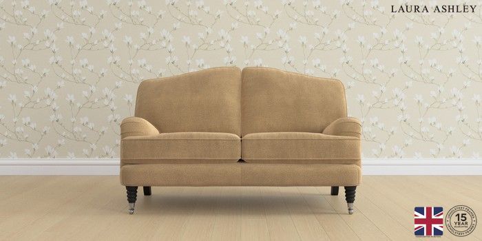 6.12.1 Buy Lynden by Laura Ashley 2 Seater Small Sofa Lundar Chenille Caramel Natural Ornate Chrome Castor - Black from the Next UK online shop Click here to use our accessible website