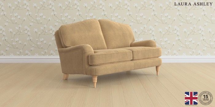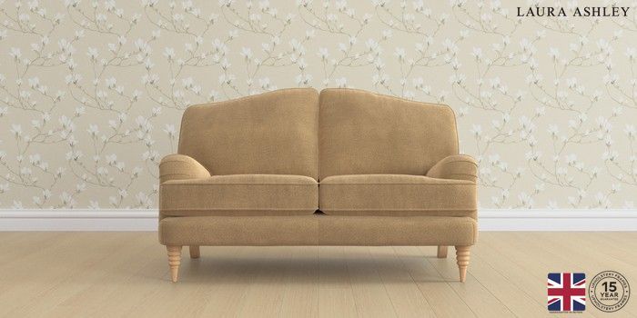 6.12.1 Buy Lynden by Laura Ashley 2 Seater Small Sofa Lundar Chenille Caramel Natural Ornate Turned - Light Oak from the Next UK online shop Click here to use our accessible website