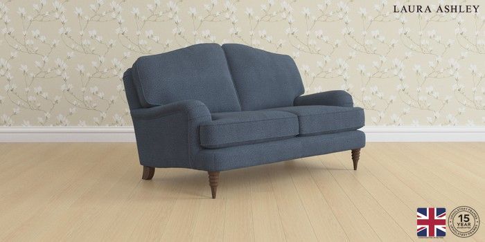 6.12.1 Buy Lynden by Laura Ashley 2 Seater Small Sofa Lundar Chenille Navy Blue Ornate Turned - Chestnut from the Next UK online shop Click here to use our accessible website