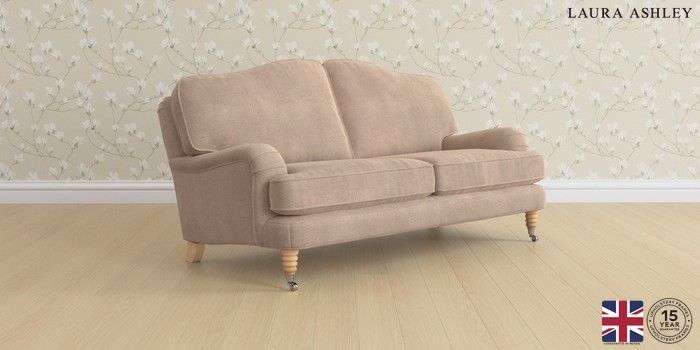 6.12.1 Buy Lynden by Laura Ashley 3 Seater Small Sofa Ailsworth Mink Natural Ornate Chrome Castor - Light Oak from the Next UK online shop Click here to use our accessible website