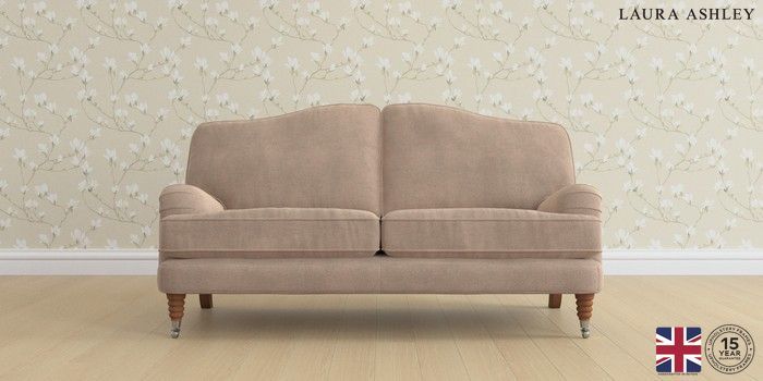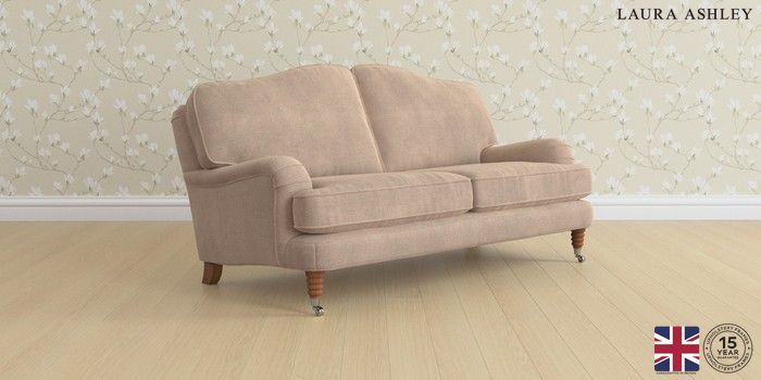 6.12.1 Buy Lynden by Laura Ashley 3 Seater Small Sofa Ailsworth Mink Natural Ornate Chrome Castor - Teak from the Next UK online shop Click here to use our accessible website