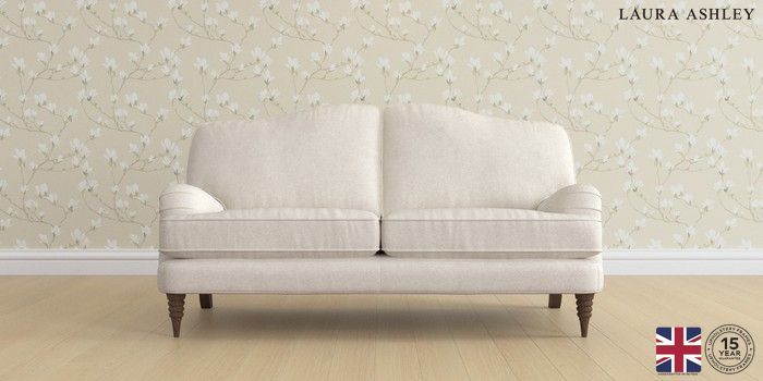 7.2.6 Buy Lynden by Laura Ashley 3 Seater Small Sofa Anneliese Oyster Natural Ornate Turned - Chestnut from the Next UK online shop Click here to use our accessible website